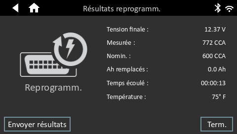 6. Sélectionnez Terminé pour envoyer les résultats au serveur et revenir au menu principal.