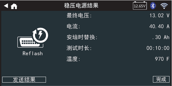 点击“发送结果”,将测试结果发送到已配置的打印机。若要返回主界面,请点击“完成”